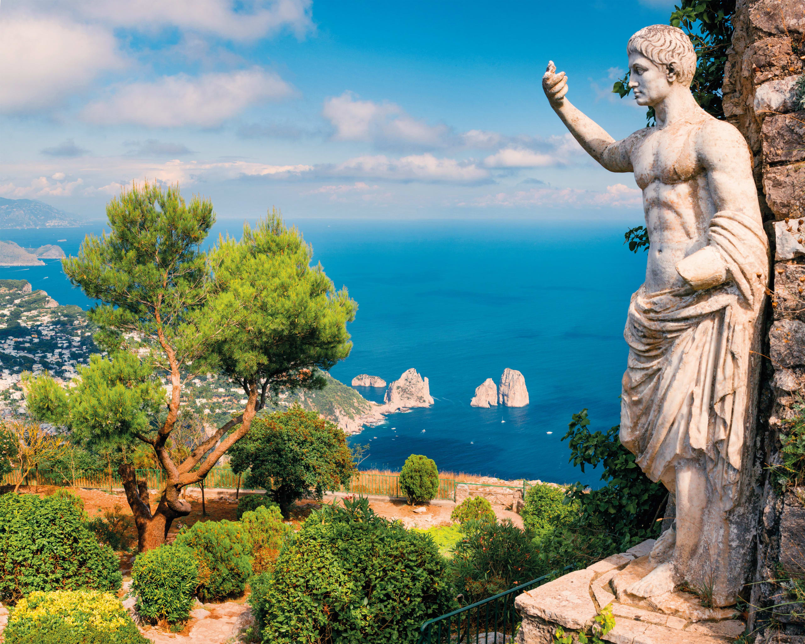 Raffinata, esclusiva e sinonimo di vacanze d’élite, Capri è un’isola nel Golfo di Napoli che gode di fama internazionale grazie alla sua atmosfera esclusiva e ai suoi paesaggi mozzafiato. Sin dal periodo dell’antico Impero Romano l’isola era ritenuta da imperatori e nobili della società come un luogo di grande fascino che nel tempo ha poi conquistato molti personaggi famosi ed è diventata anche il set di molti capolavori cinematografici. L’isola è ora sinonimo di una vacanza all’insegna dell’eleganza, del glamour ma anche di bellissime spiagge e di acque cristalline. L’isola di Capri è una località davvero suggestiva che è diventata famosa in tutto il mondo per il suo splendore e comprende due comuni: Capri e Anacapri. Capri è la città più famosa e più frequentata dell’isola, dove si trovano le spiagge, la famosa Piazzetta, le boutique di lusso, il porto e i principali locali per la movida. Anacapri, invece, è una cittadina più tranquilla dove rimane ancora un’atmosfera verace e la vita segue i ritmi lenti di un tempo, con altre  boutique di lusso e più botteghe di artigiani. -
